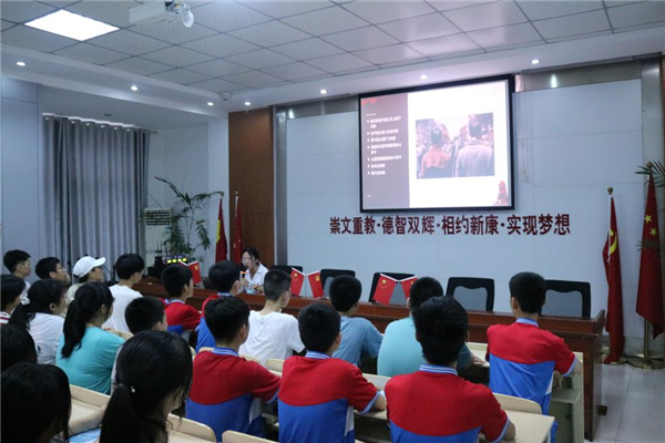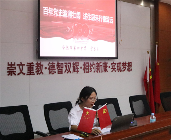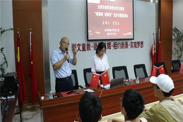 为庆祝中国共产党百年华诞,贯彻落实习近平总书记在党史学习教育动员大会上的重要讲话精神。7月1日,合肥市教育局“举旗帜 送理论”党史专题宣讲团成员,合肥市第四中学方昌乐老师走进合肥新康中学,开展《百年党史波澜壮阔,述往思来行稳致远》专题报告,九年级师生认真听讲,积极互动。宣讲会由新康中学专职副书记陈晓永同志主持。