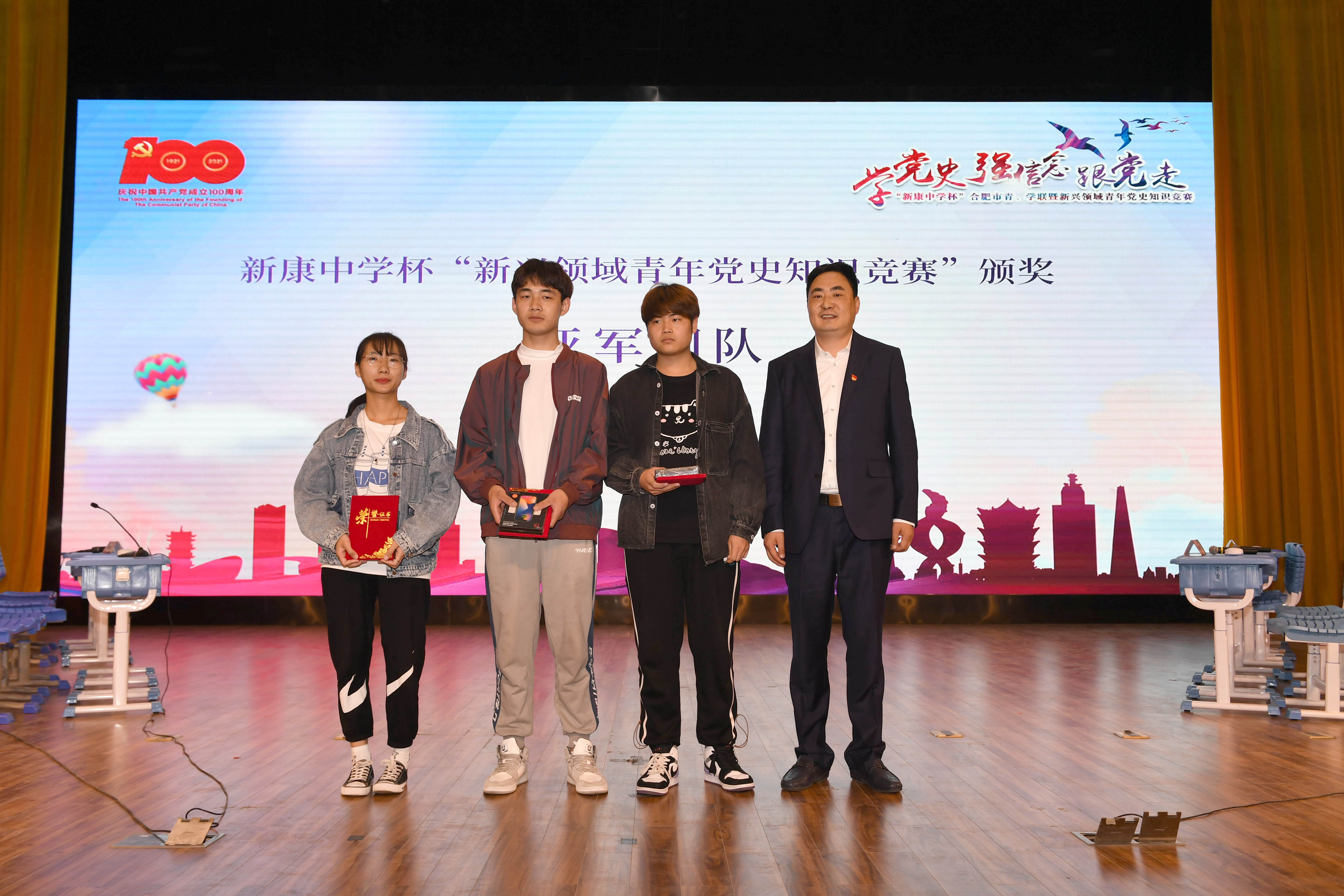 为迎接中国共产党成立100周年,深入学习贯彻习近平总书记在党史学习教育动员大会上的重要讲话精神,4月20日上午,“新康中学杯”合肥市青联、学联暨新兴领域青年党史知识竞赛隆重举行。