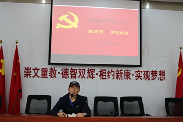 新康中学党支部书记王俊同志做总结发言,对合肥新康中学党支部的成立表示祝贺,对自己当选为首届支部书记表示感谢,对支部各委员提出高标准、严要求。
