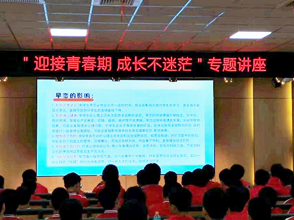 为进一步加强学校心理健康教育工作,培养学生积极健康的心理品质,近日,合肥新康中学为初一、二年级全体学生开展了一场主题为“迎接青春期,成长不迷茫”青春期专题讲座。