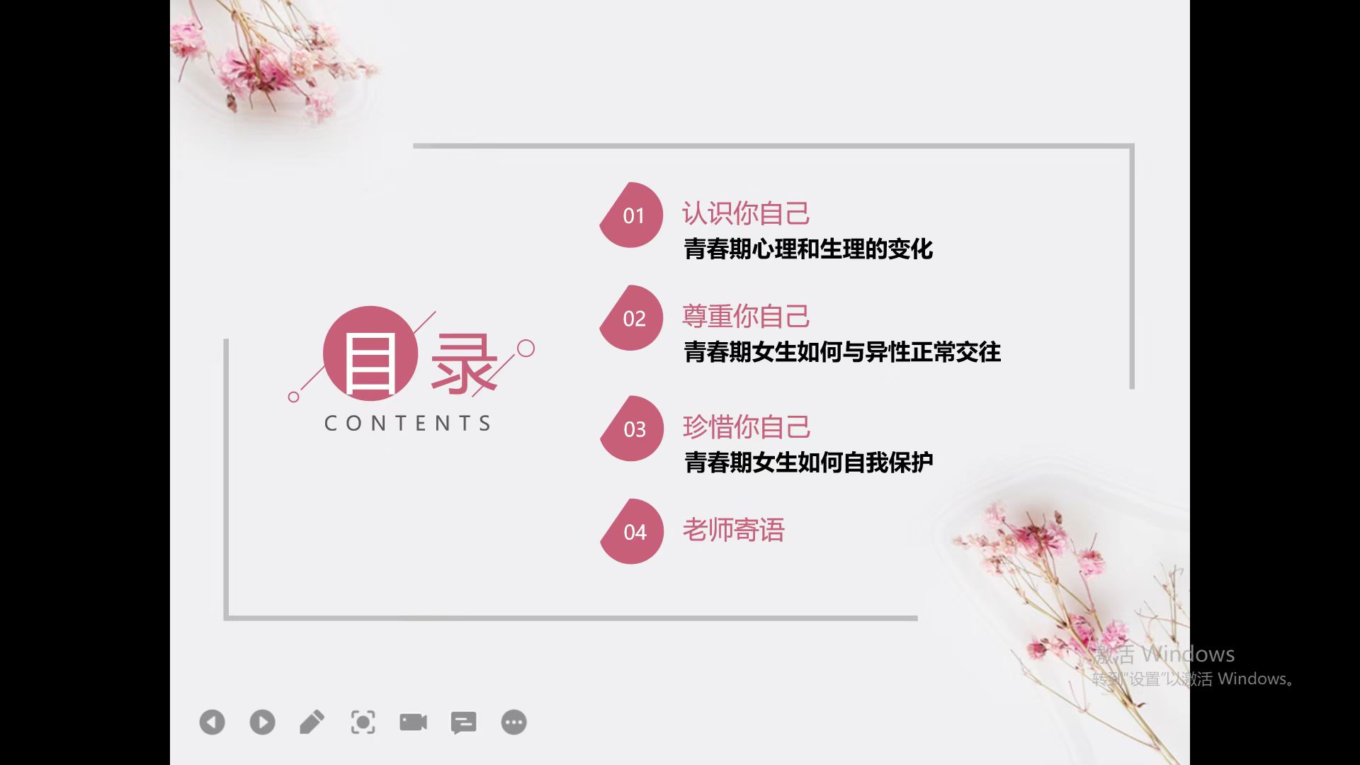 作为青春期的女生,我们要培养坚定的意志力,做自尊自爱的女生;学会与异性相处,做乐观大方的女生;懂得自我保护,做聪慧自如的女生。我们要为自己负责,善于呵护自己;把目光聚焦在学业上,让理想飞得更高、更远。