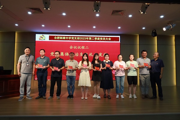 6月30日下午,合肥新康中学党支部召开2023年第二季度党员大会,合肥市教育局督学稂乐民、包河区非公党建指导员卫明、合肥市第四十八中学党委副书记裴娟和党建办主任汪明桥等同志应邀出席。