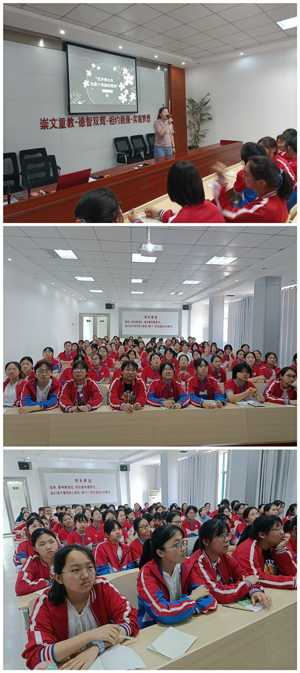 校园的时光是多么美好,但有些特殊的感情正悄悄萌芽,它影响了同学们的正常交往。5月31日下午,我校政治老师宋艺老师为学生开展了青春期心理健康讲座——“花开的太早,也是个美丽的错误”,针对学生青春期可能出现的“早恋”问题,给同学们做科学的引导。