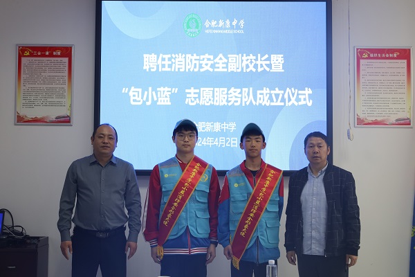 徐学法校长发言:祝贺合肥新康中学“包小蓝”志愿服务队成立,各位队员要努力学习消防安全知识,并应用在日常生活中。日常工作中,做好消防安全知识的宣传,让更多人了解消防安全的重要性,提高安全防范意识,增强自救能力。
