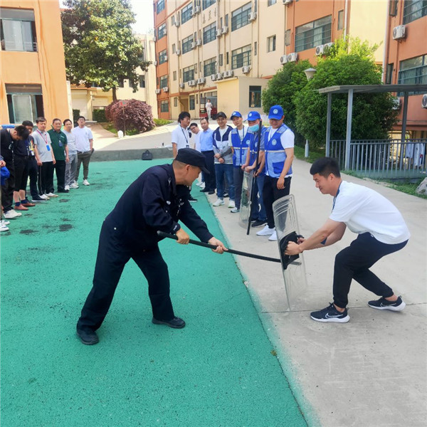为进一步加强“平安校园 和谐校园”建设,防范校园突发暴力事件,增强学校防暴力突发事件应急处置能力,2023年4月20日上午,合肥新康中学法治副校长彭蓬警官带领滨湖派出所民警到我校对“护校队”的老师们进行了防暴恐安全培训及演练活动。