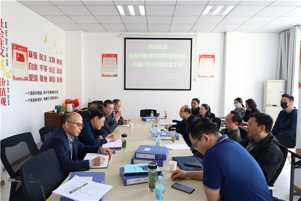 为进一步促进民办学校依法办学,不断提高办学品质和办学水平,3月9日上午,合肥市教育局第四年检组组长姚健带领副组长雷金军,法规处陈峰等一行领导到我校开展2022年度工作检查。市教育局督导顾明书记、合肥新康中学党支部书记兼校长王俊、党支部专职副书记陈晓永、高中部校长段方等行政班子成员全程参与。