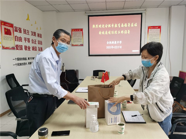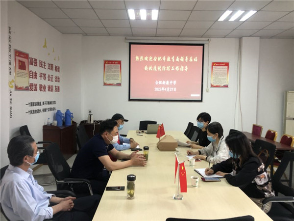 4月27日下午,合肥市教育局疫情防控第六督导组组长徐风云主任,财审处焦扬副处长,包河区教体局教育科韩眷眷科长来我校进行疫情防控工作督导检查。
