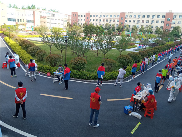学校主要领导人及街道领导班子成员现场指导、协调,迅速完成物资准备、人员安排、场地布置等工作,确保检测工作有序开展。