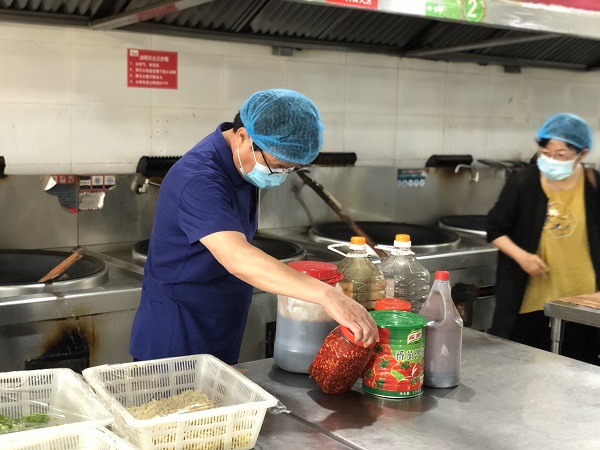 指导组一行先对我校进行实地考察。在食堂对食材购买清单、物料存储环境、食品加工操作、员工健康证明等逐项深入细致检查。到宿舍一“看”衣物、鞋、被摆放齐整;二“闻”厕所、洗漱间无异味;三“晃”床铺纹丝不动。查看保安室监控清晰,八大件器械齐备,专业保安人员持证上岗。
