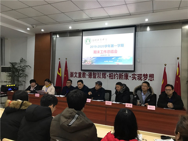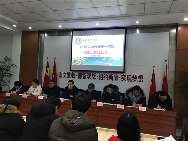 2020年1月16日下午,合肥新康中学召开2019-2020学年度第一学期全校教职工期末工作会议。会议由学校党支部专职副书记陈晓永主持,董事长王俊,初、高中领导班子及全体教职工参加会议。