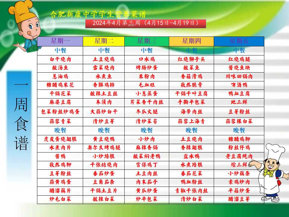 合肥新康中学4.22——4.26一周学生菜单
