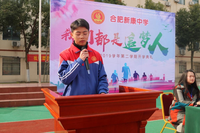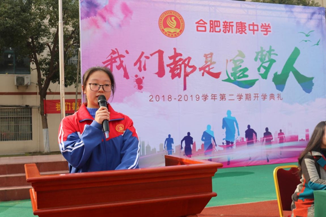 2019年2月25日上午,合肥新康中学全体师生沐浴着温暖的春光,带着灿烂的笑脸,怀着激动的心情,共赴本学期的第一次盛大集会——开学典礼。此次活动以“我们都是追梦人”为主题,代表着新学期我校全体师生将以崭新的面貌,开启新的征程,一起去追求我们远大的梦想。