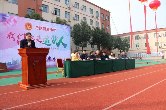 本次活动由魏鑫老师主持,合肥新康中学董事长、校长王俊先生、包河区教学督导王鹏芹女士、高中部校长耿业斌先生、初中部校长徐学法先生等领导莅临现场。魏老师致开场词,并于升旗仪式结束后宣布活动正式开始。