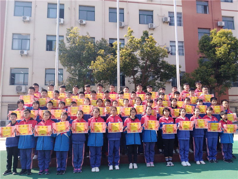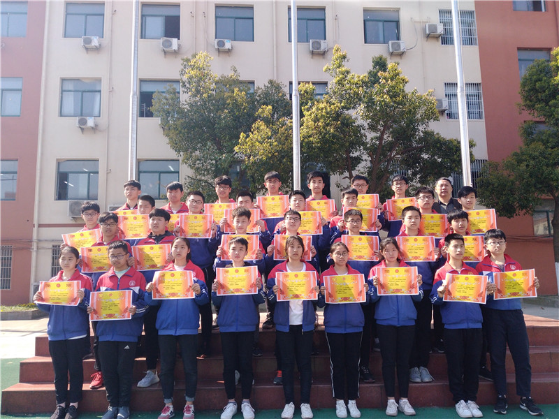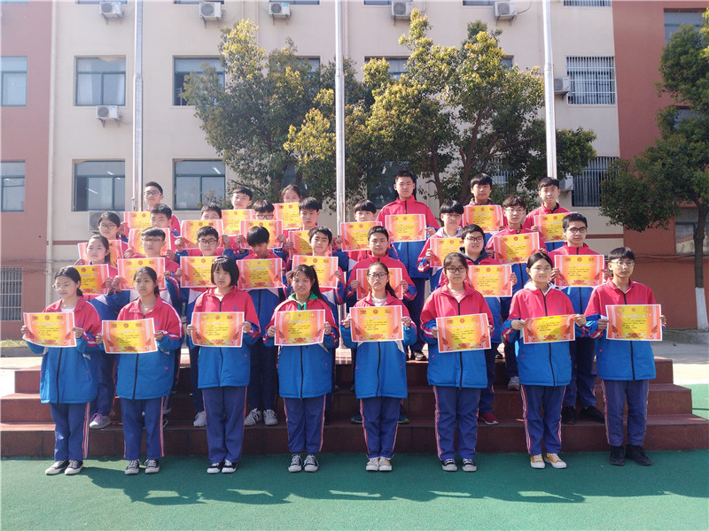 接下来学校对获得突出进步生的学生和年级前30名的同学进行表彰。初中部徐校长、李校长、龚校长为学生们颁发了奖状,并合影留念。