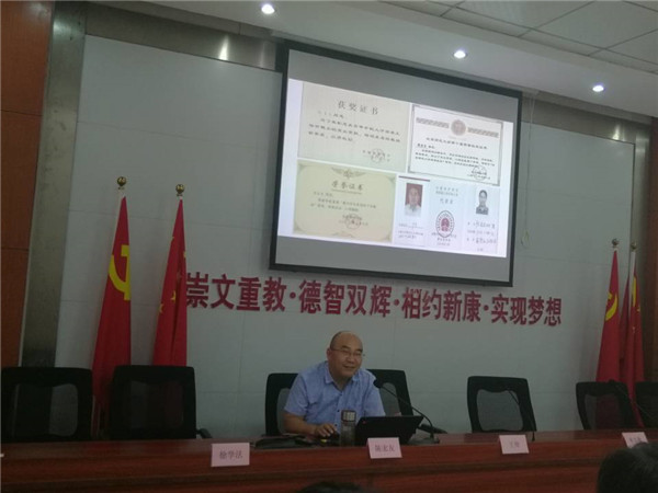 随后,特邀嘉宾陈宏友教授做了题为“信息时代教师职业道德与心理健康”的专题讲座。陈教授首先提到了教育的根本任务是为了立德树人,因此每个教师都应该坚守师德,以身作则,产生作为师范者应产生的教育影响,教育学生成才成人。陈教授还根据个人的从教经历,为教师们做启发式的心理健康教育,他讲述了教师心理健康的重要意义,告诉老师们可以用怎样的心态和方式维护个人的心理健康。陈教授的发言让教师们大有收获,受益匪浅。