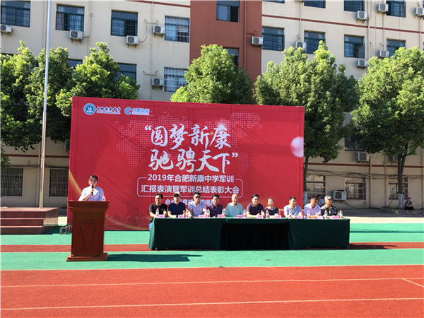 合肥新康中学董事长王俊先生、合肥新康中学督导专员兼第一书记刘建国先生、初中部督导专员王鹏芹督学、党支部书记专职副书记陈晓永同志、初中部校长徐学法先生、高中部校长胡文波先生、初中部副校长李森先生、初中部副校长龚红卫先生、军方代表苏申春教官等领导及学生家长,观看了汇报表演。合肥论坛对此进行了现场直播。