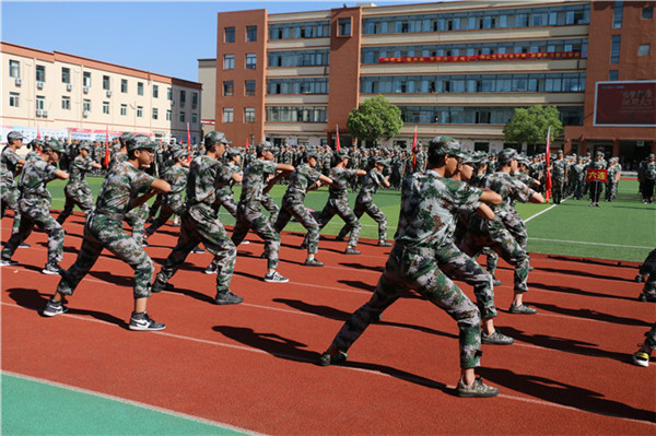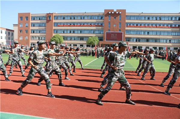 2019年8月30日上午,合肥新康中学军训汇报表演在学校操场隆重举行。在这为期五天的军训生活中,同学们不畏骄阳烈日,不惧困难挑战,凭借自己顽强的意志,战胜了自我,完美展现了新康学子独一无二的风采。军训汇报表演是为了检验同学们军训成果,同学们身着军装,整齐列队,精神抖擞的期待着这一展现自我的重要时刻。