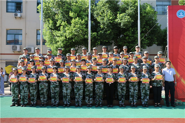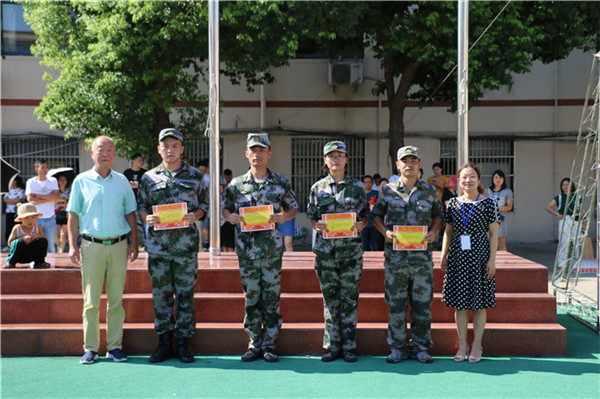 汇报表演后,学校对本次军训中的优秀个人、连队、老师和优秀教官进行表彰并合影留念。