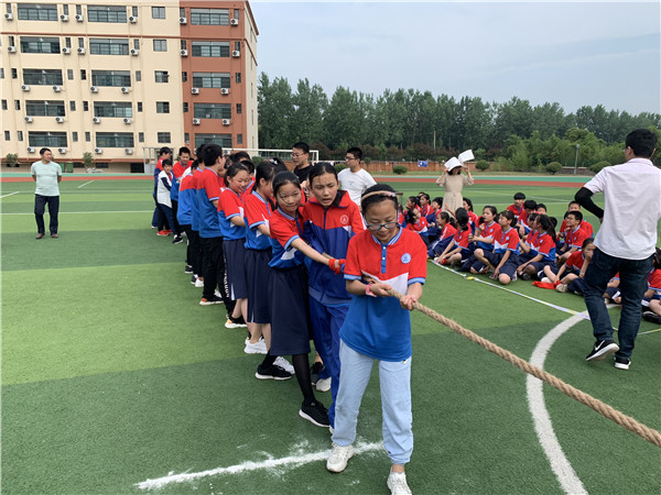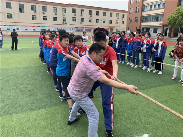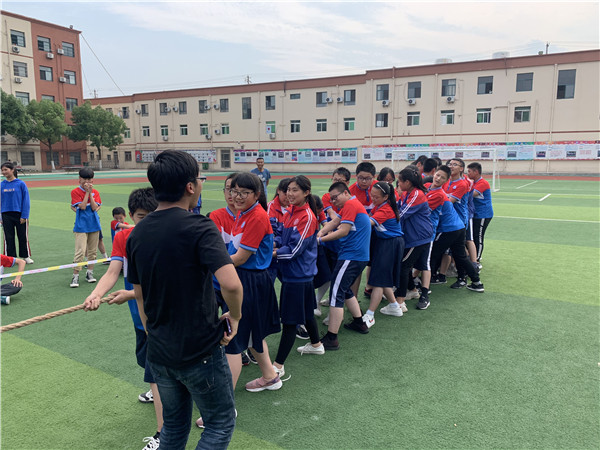 紧接着进行大会第四项,由八年级团员代表陈婧怡带领即将离队的少先队员重温少先队员誓词,呼号。同学们在队旗下举起右手,重温誓词。紧接着八年级优秀入团积极分子代表八(1)班凌志豪同学发言,凌同学对即将离队,迈入青春行列的同学们表示了诚挚的祝贺,他指出作为新时代下的学生,无论何时何地都要努力学习科学知识,发展自身能力,才能在祖国未来的建设中添砖加瓦。随后,由新康中学初中部团委余老师做入团教育,他首先向在场的同学介绍了中国共青团团史,团徽,团旗等相关知识,同时勉励离队同学继续保持少先队的优良传统,鼓励同学们积极入团,成为光荣的社会主义接班人。在会议的最后,举办了新康中学七八年级“青春力量”拔河比赛,同学们在赛场上,挥洒汗水,展示活力,各班级同学和老师拼尽全力,为班级荣誉而战,最后八(1)班、七(1)班分别荣获八年级组、七年级组第一名。此次会议在一阵欢声笑语中结束。