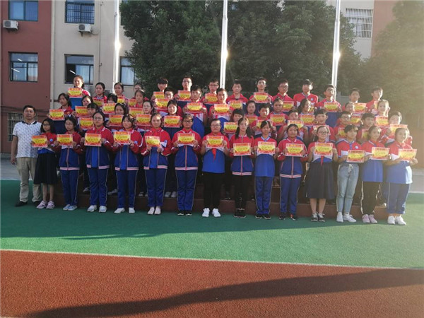 2019年9月23日下午16:50分,合肥新康中学初中部在操场举行2019--2020学年度下半年第一次周考表彰大会。此次表彰大会由杨伟燕老师主持,初中部校长徐学法,副校长龚红卫、李森携全体初中部师生出席了此次表彰大会。