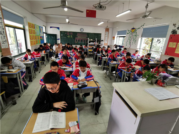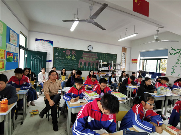 公开课后,语文组立即进行了评课活动。龚校长及全体语文组老师参与。