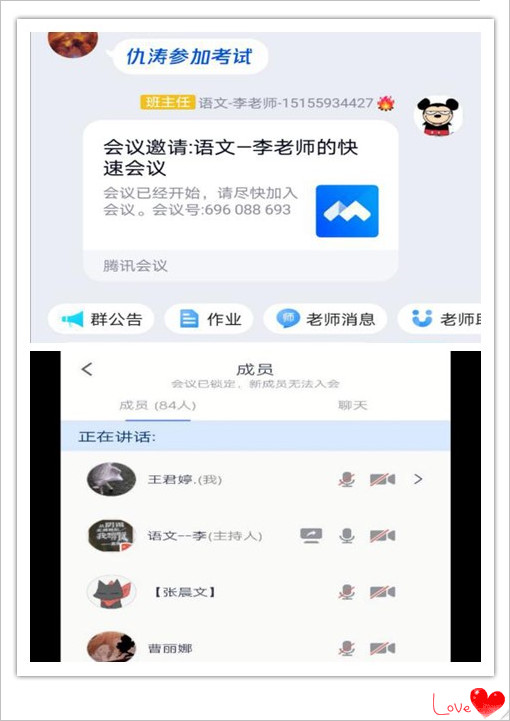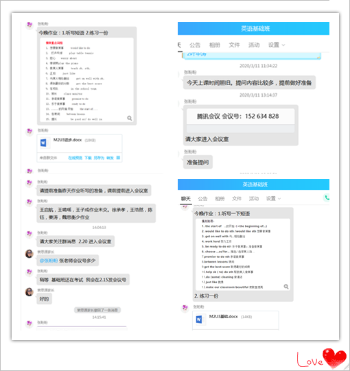 为了学生能够更好上课,老师们会提前一天将预习资料和视频发到QQ群里,让学生提前预习新的课程。借助「腾讯会议」空中课堂,和学生们一同开启新的课程。