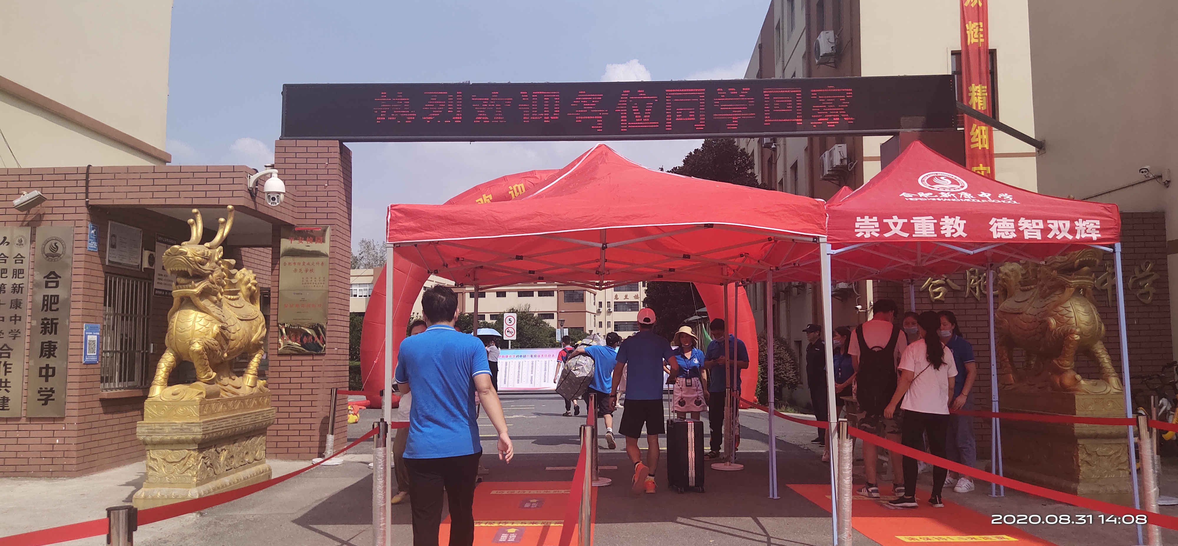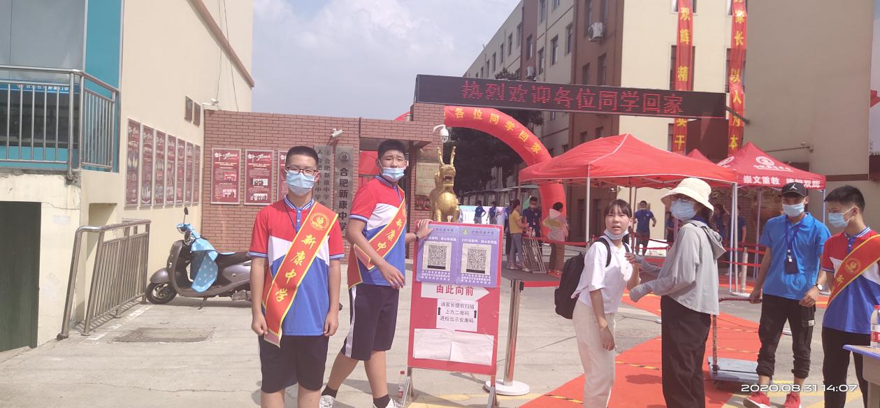 2020年8月31号下午从1点到5点,合肥市新康中七、八、九三个年级,分批次,错时段均已全部安全返校。我校全体教职工和我们可爱的小志愿者们,不畏酷暑,为返校的学生和家长提供最大的便利,一切为了学生,为了学生的一切!