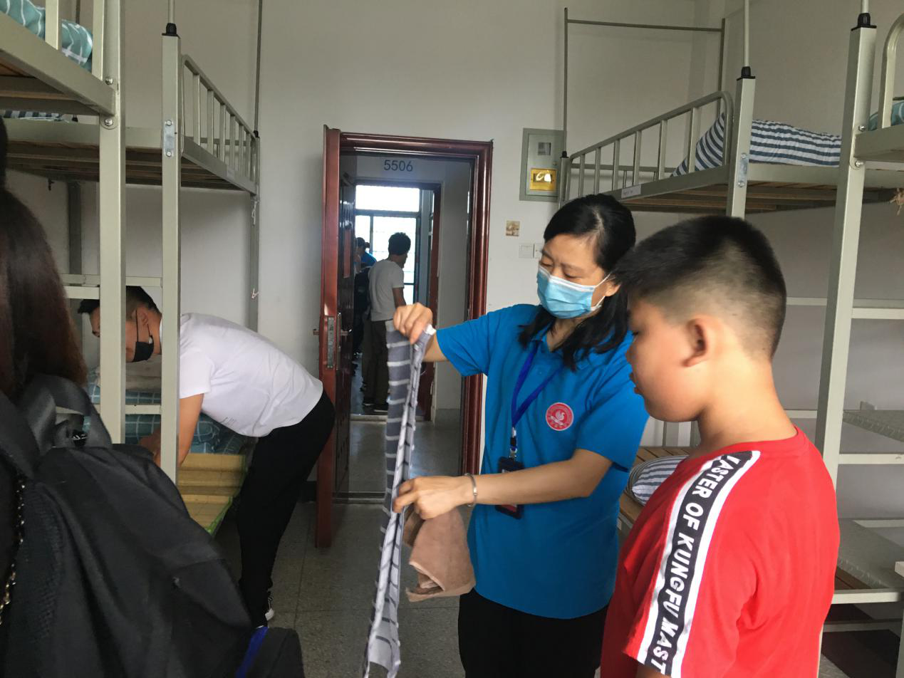 孩子们,来到寝室,等待已久的三位生活老师和一位科任老师,热情地欢迎同学们和家长们的到来。帮助指导学生们整理内容,并耐心地解答家长们关于孩子生活方面的疑问。