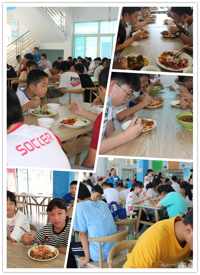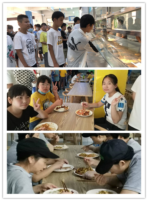 上午11点,各班有序排队,到餐厅就餐。班主任老师们,细心引导,让学生吃好入学的第一餐。色香味俱全的饭菜,让孩子们看花了眼。孩子们满心欢喜地吃着可口的饭菜。