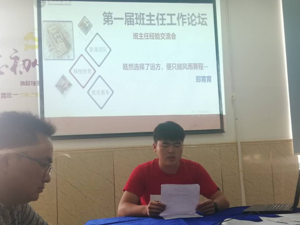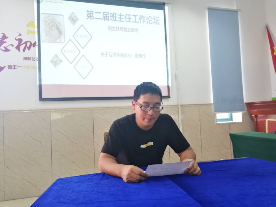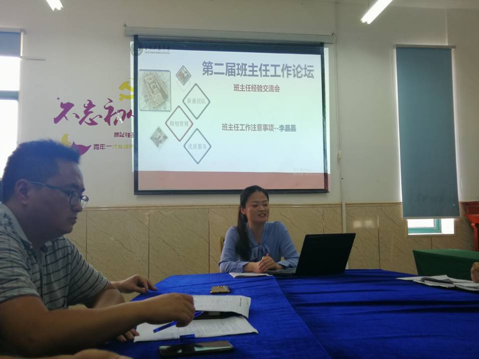 汪主任首先详细讲解了班主任的工作内容以及工作要求。接着汪主任又主持了“第二届班主任工作论坛””,黄英子、李晶晶、张伟华、王传伟、郑宵宵等5位老师分享了自己的班主任工作心得,老师们的分享让大家都受益匪浅。