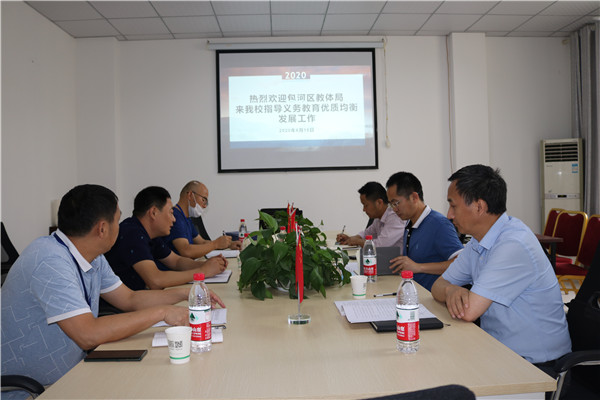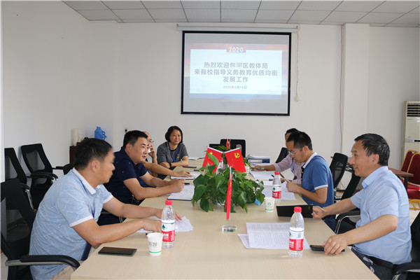 2020年6月18日下午,包河区教育体局义务教育优质均衡发展督导组来我校检查指导工作。检查组由包河区教体局党委副书记、副局长李磊、包河区政府督导室主任彭江龙、包河区督导室督学王明云几位领导组成,董事长王俊、党委副书记陈晓永、初中部校长徐学法陪同接待。