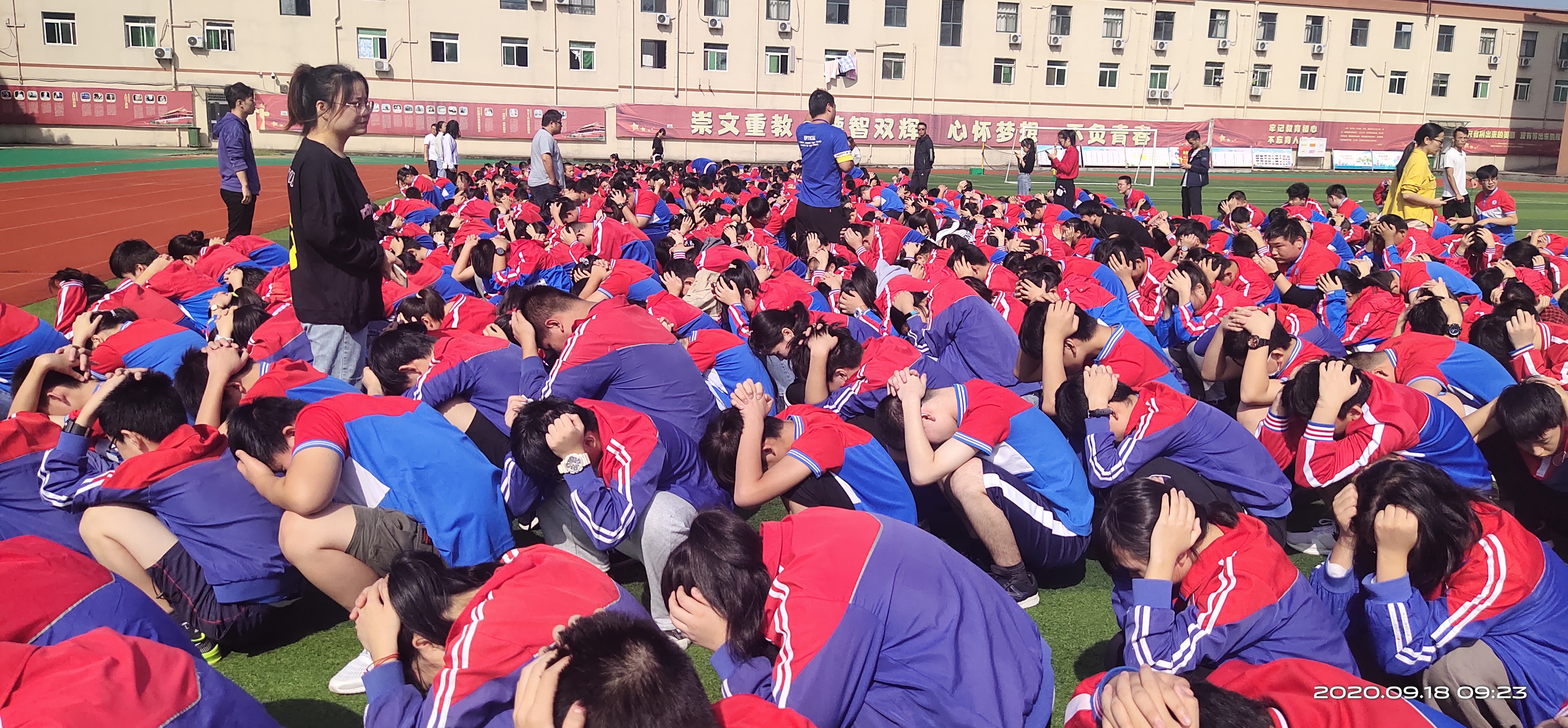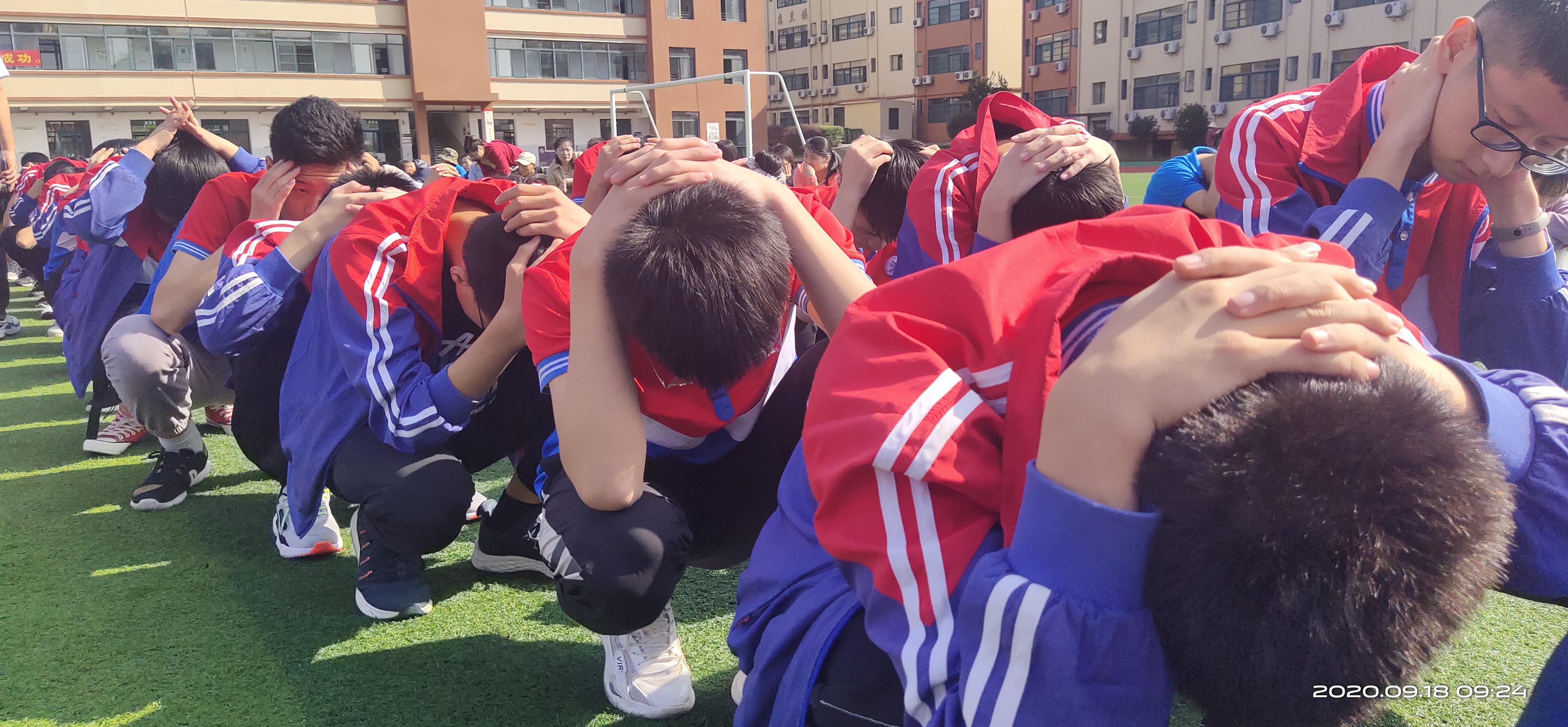 2020年的9月18日上午,合肥新康中学举行了“九一八”防空疏散演练。