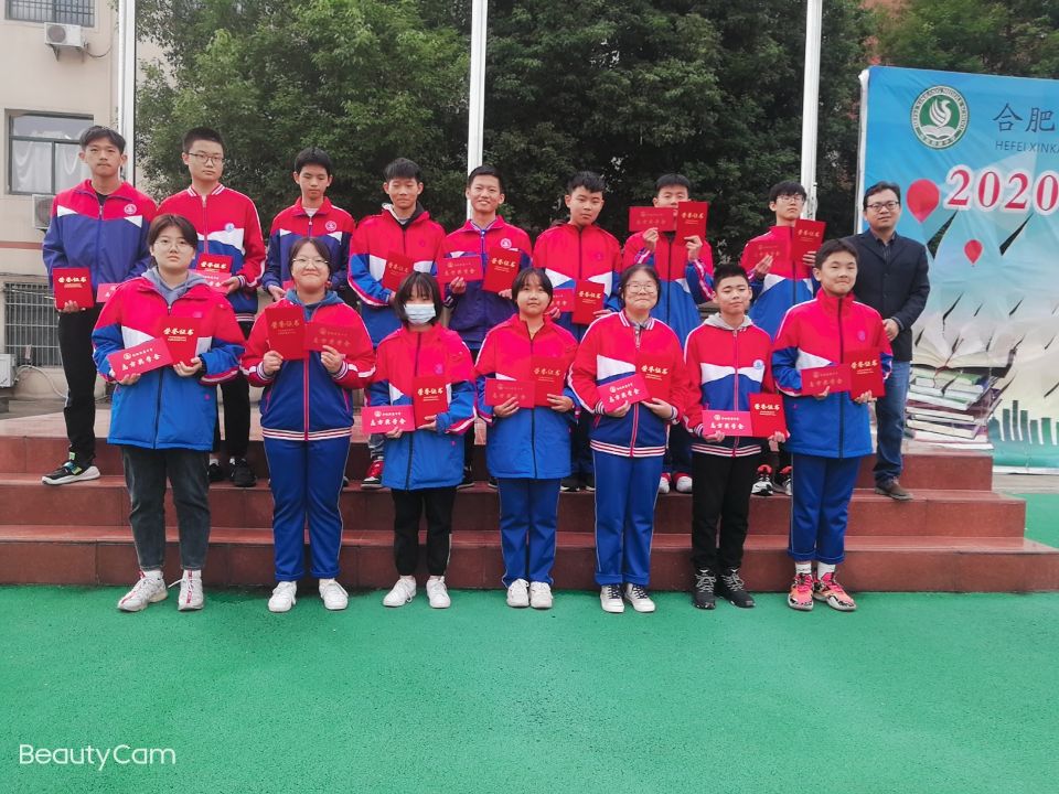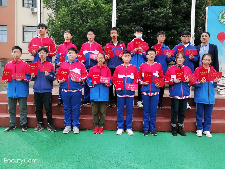 主持人王琪干事随后宣读了八、九年级上学年获得一、二、三等奖学金的学生名单,徐校长和龚校长分别为他们颁发荣誉证书及奖金,并合影留念。