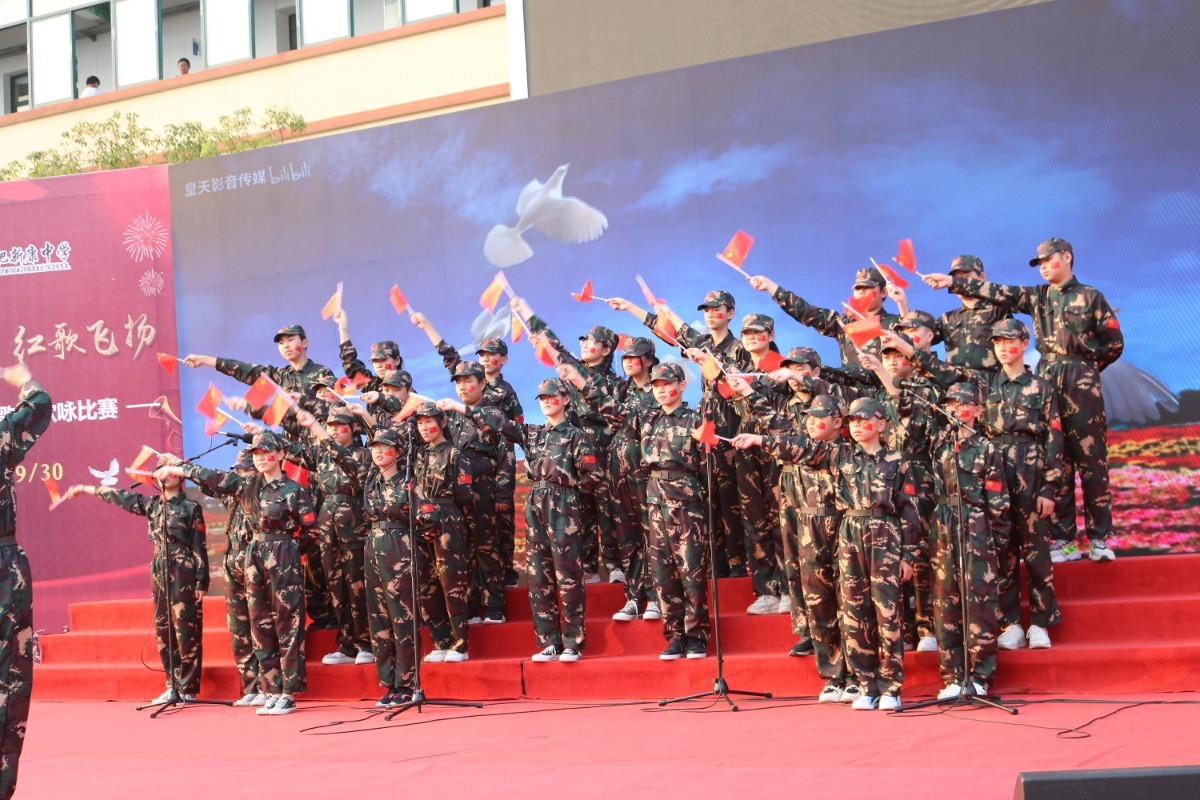 红歌会围绕歌颂伟大祖国的主题,以唤起人们的红色记忆,勾起人们的爱国情。红歌会上的近20首曲目,都由各班级精心挑选﹑认真排练打造而成,歌曲强烈的节奏感和深厚的感情,引发了全场听众的共鸣,《闪闪红星》是亿万颗炽热的中国心,《强军战歌》是钢铁战士们的卫国情,《红旗飘飘》是中国人民坚强守卫﹑屹立不倒的旗帜,《走进新时代》是中国人民正在努力创造的美好未来……