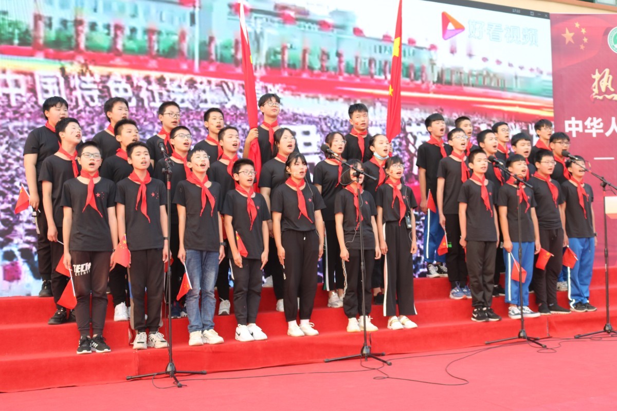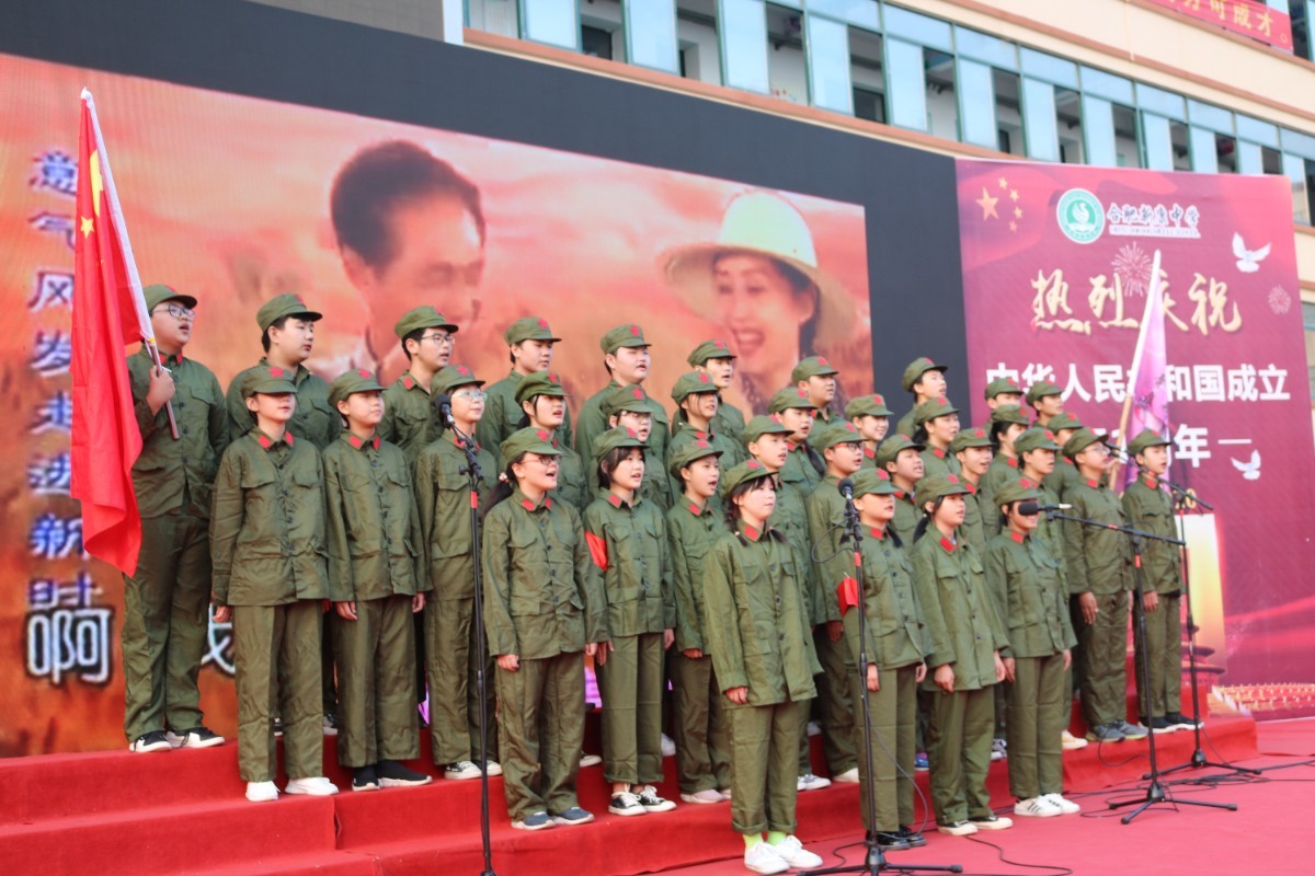在李晶晶老师和孙浩聪同学的主持下,红歌会以歌曲《我和我的祖国》开场。歌声澎湃,情感激荡,全体新康人用歌声表达对祖国母亲的爱与祝福。