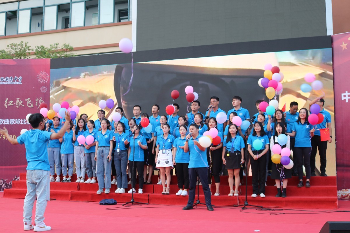 整个红歌会在全体老师合唱《我的中国心》的高潮中降下了帷幕。