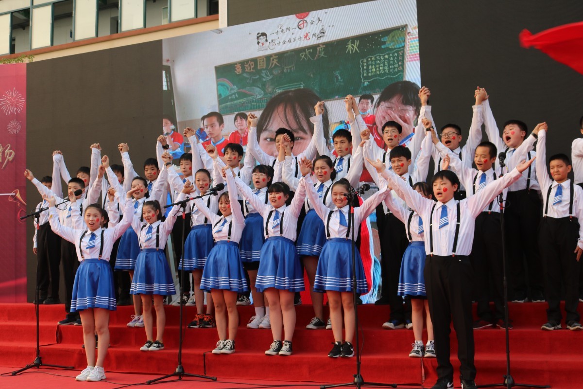 台上是红歌﹑台下是红色的海洋,几十面大气迎风招展,无数面小旗在同学们的手中欢快起舞,它们和同学们的掌声﹑呐喊声一起汇成了一片欢乐的中国红。