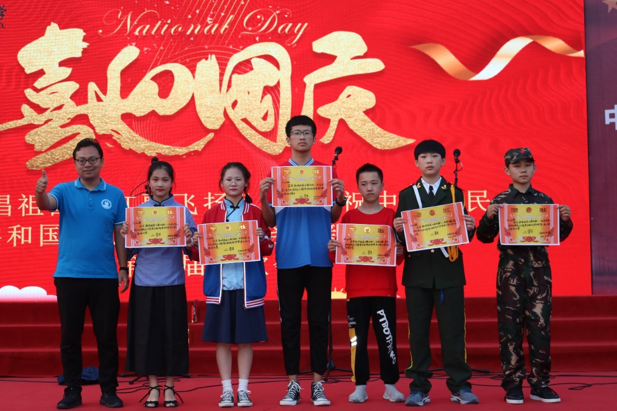 徐校长、陈书记、龚校长分别为获得特等奖、一等奖、二等奖、优秀指挥员的班级和同学颁发了奖状并合影留恋。