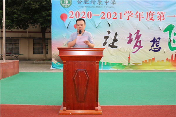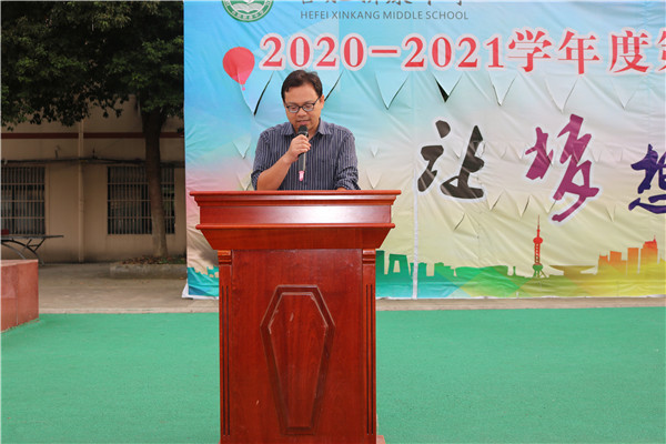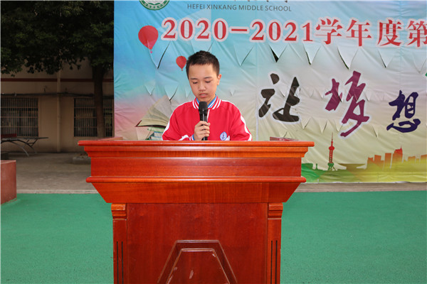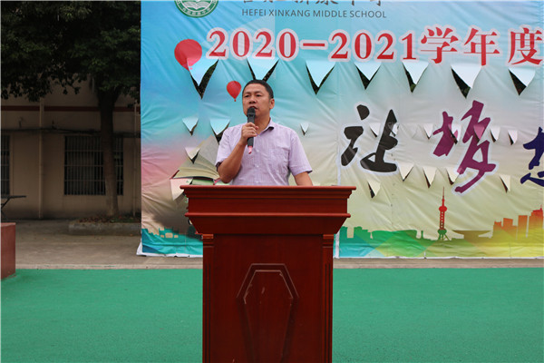教师代表陈世宝老师,七年级新生代表曹家争同学分别在大会上发言。陈世宝老师描述了毕业班老师工作及毕业班学子学习的状态,如此势头,未来可期,以此他告诉七、八年级的同学们现在一定要养成良好的学习习惯,打好基础,以待厚积薄发,赢在中考。曹家争同学分享了入学一个月的感受,新康让他取得了成绩,获得了成长,让他对未来有了目标和希望,为此他由衷的感谢新康,他为自己选择成为一名新康学子而自豪、快乐。