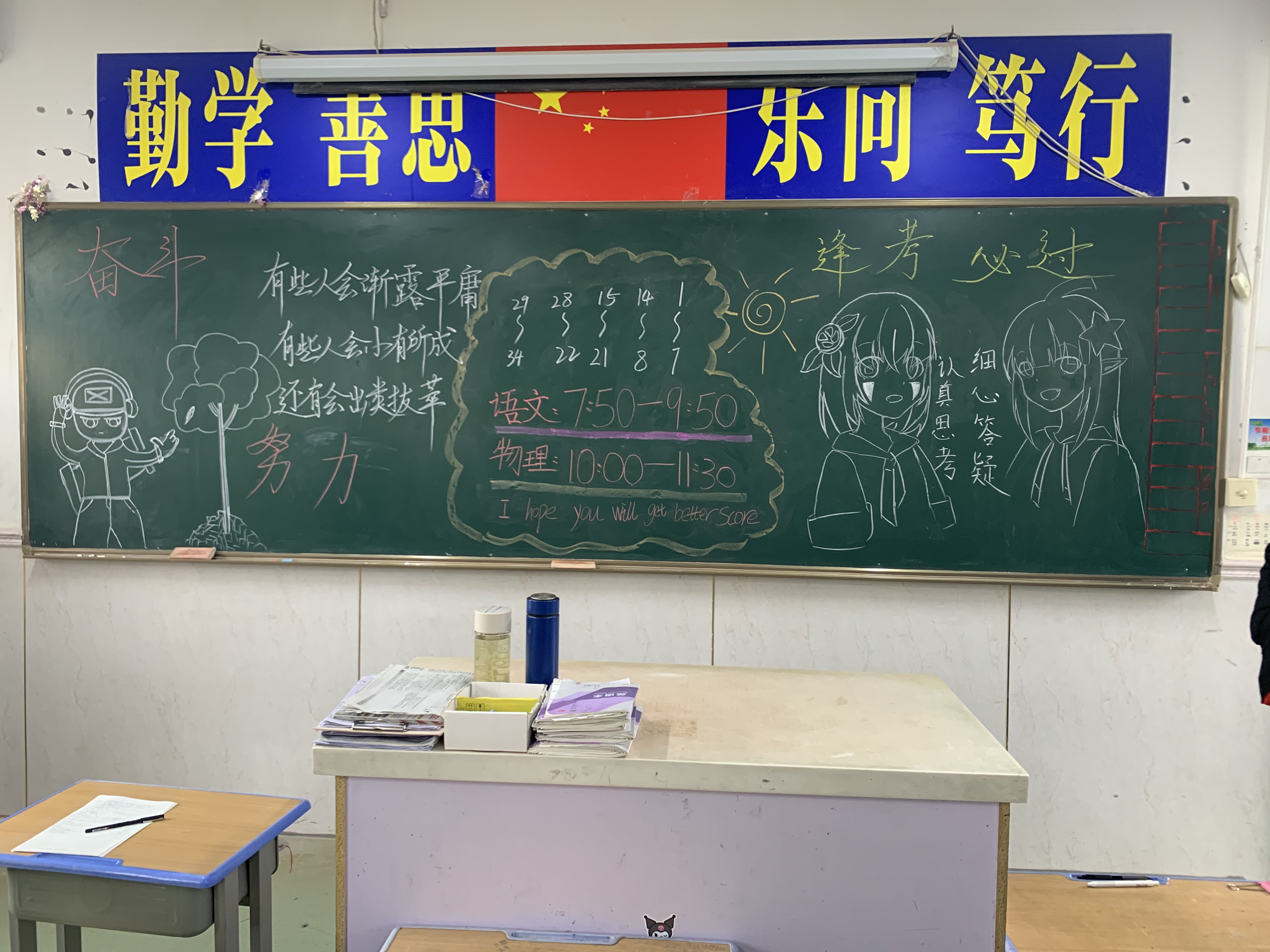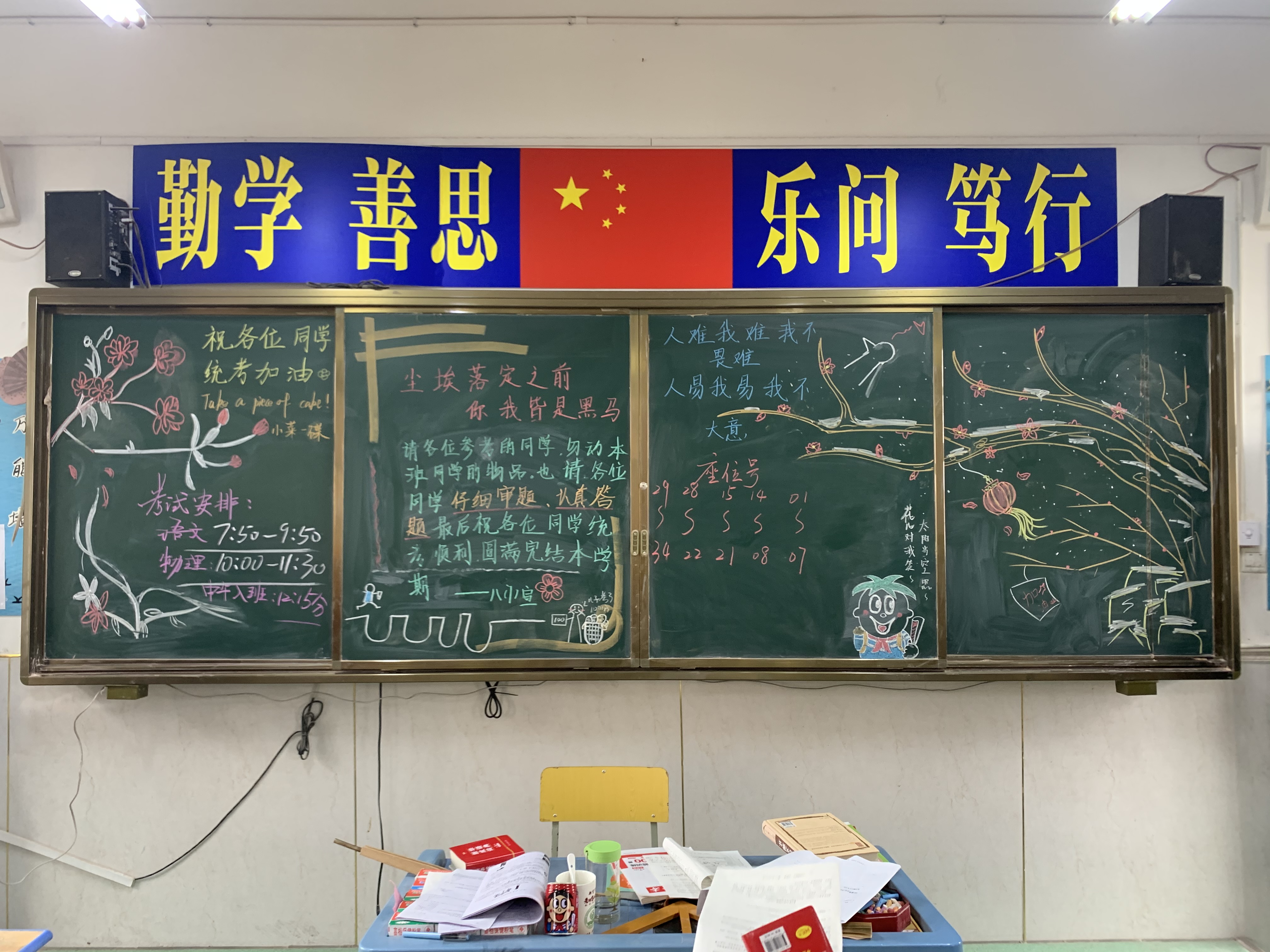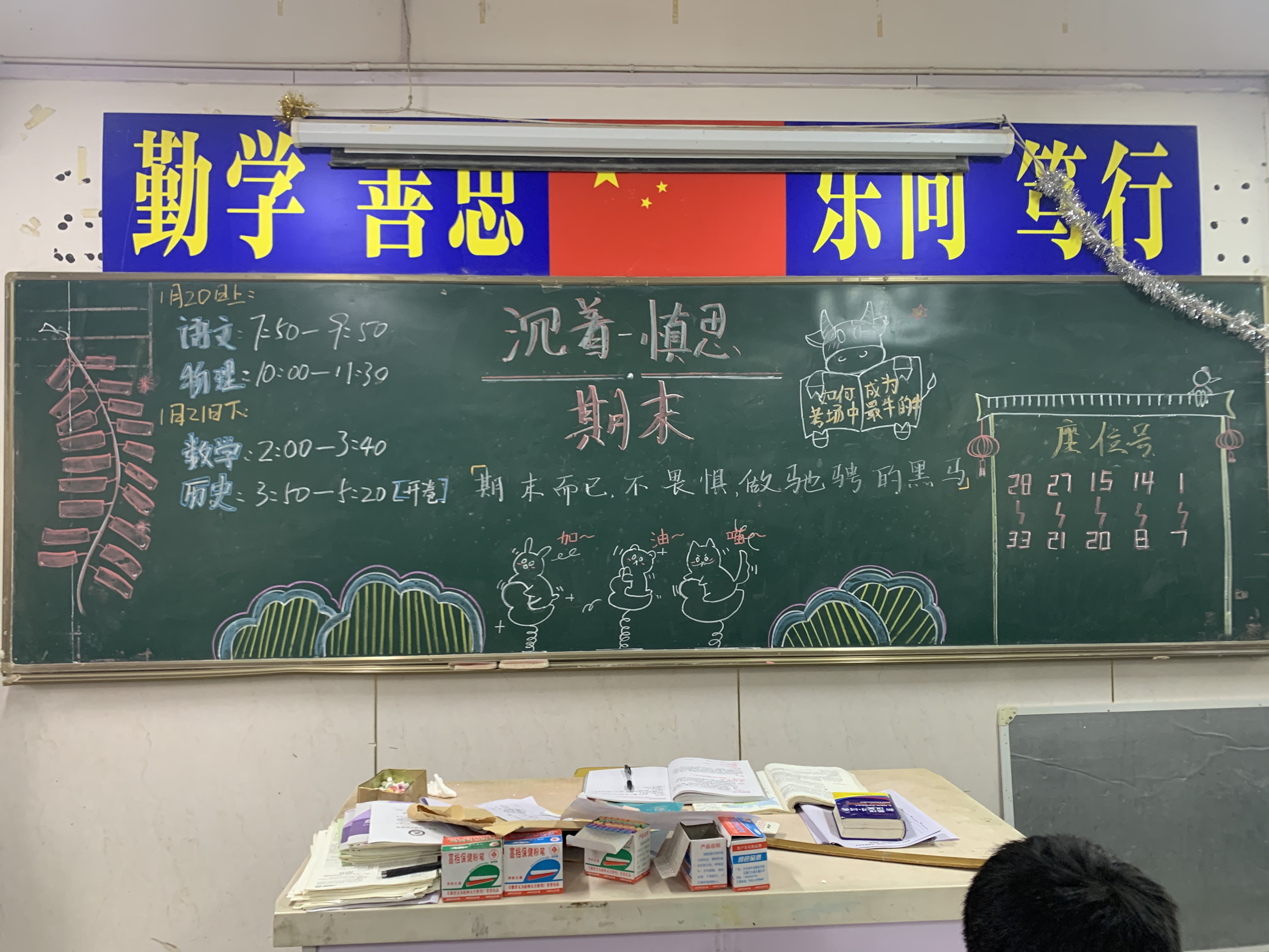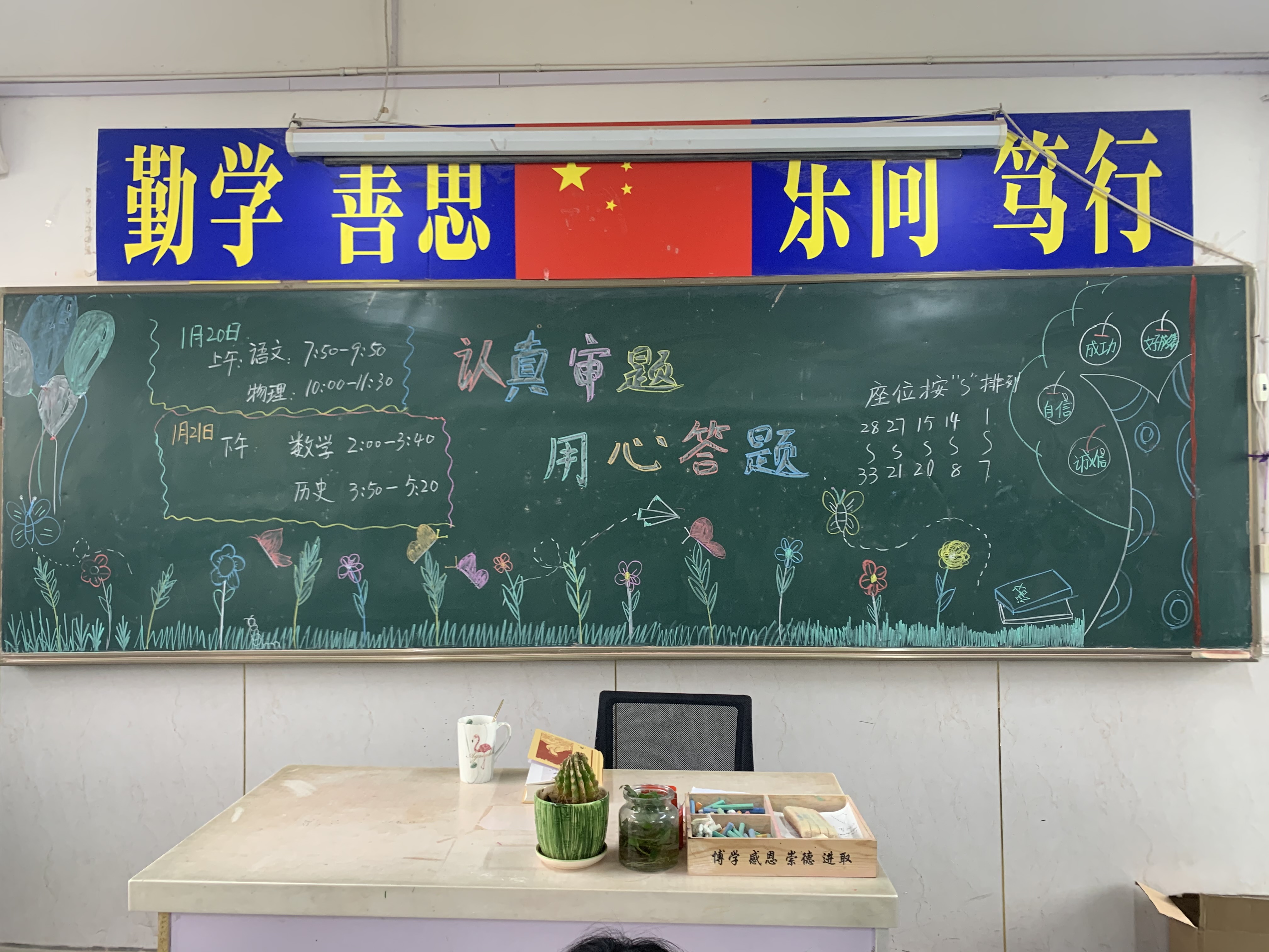 2021年1月21日,我校进行2020-2021学年度第一学期期末考试,为彰显班级文化,鼓舞学生期末考试信心,各班级按照教务处要求,进行黑板布置,各班级老师、学生各显神通,现将各班级黑板设计展示如下: