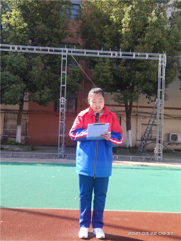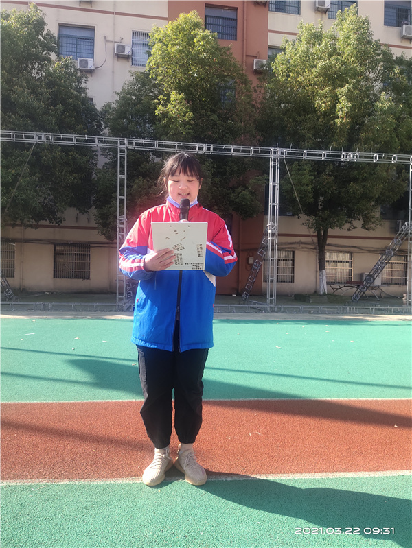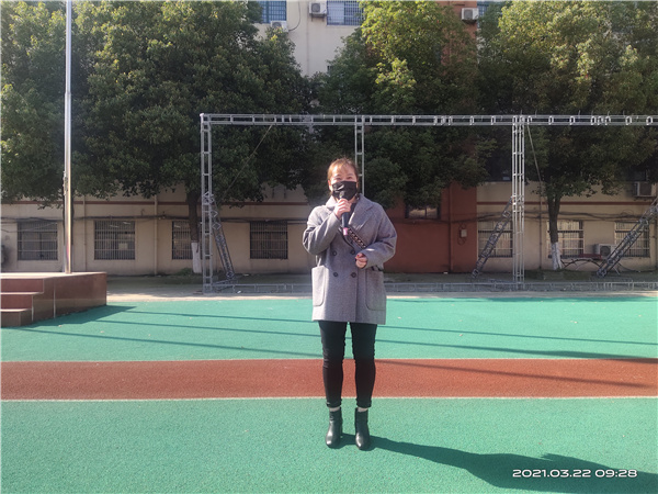主持人王琪老师致开场词,她向同学们描绘了美丽的新康校园,带着同学们回顾了自徐校长来到新康,采用寿春管理模式后,新康在校风校貌、办学成绩、家长口碑等方面发生的翻天覆地的变化,王老师热情洋溢的开场词激起了全校师生身为新康人的自豪之情。