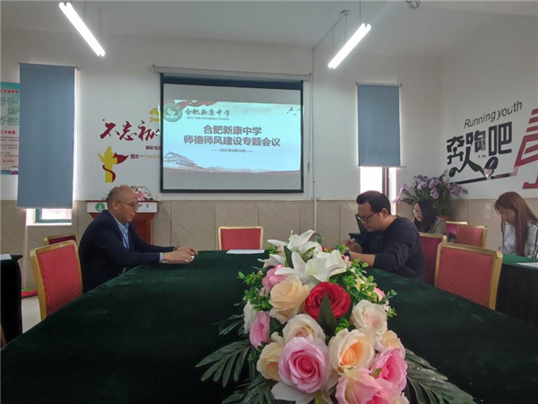 为做好合肥一中等六所学校《致全市广大中小学幼儿园教师的倡议书》、合肥八中等13所学校教师响应倡议《承诺书 》和《教育部通报教师违反职业行为的典型案例》以及《关于切实维护中小学生身心健康的紧急通知》的宣传学习工作,4月26日下午,合肥新康中学初中部召开全体教师的师德师风建设专题会议,集中进行了学习。