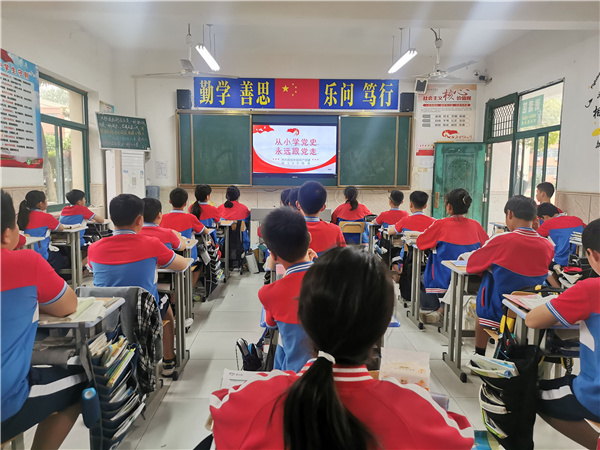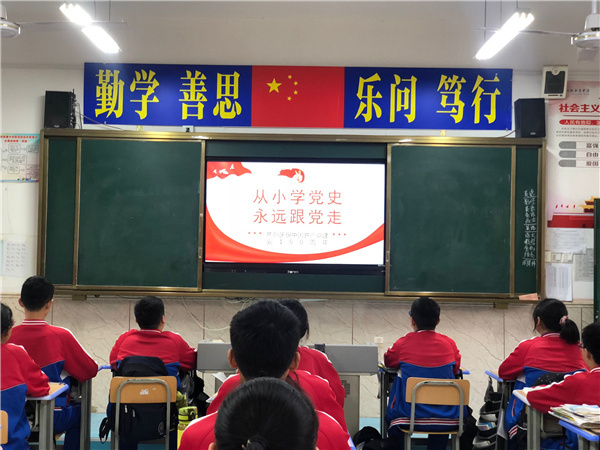 为热烈庆祝中国共产党成立100周年,深入学习贯彻习近平新时代中国特色社会主义思想,加强党史学习教育,坚持学习党史与学习新中国史、改革开放史、社会主义发展史相贯通,根据中央决策和教育部在中小学的部署,合肥新康中学以班会课的形式开展了“从小学党史,永远跟党走”主题教育活动。