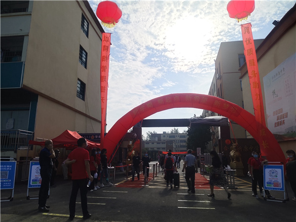 清晨朝阳,鸟雀鸣唱。徐校长带领领导班子及全体教职工人员开始了迎新生的各项布置工作。摆好防疫及入校提示展板,拉好警戒线,铺好消毒垫,布置好检查点。交通疏导员、体温测量员、行李运送员、学生引导员等人员就位,按照既定的计划,各项工作布置的井井有条。