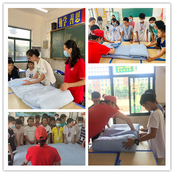 “独立,从学会自己叠被子开始”。为了让新同学们早早适应寄宿制学校的生活,学会一些独立生活的技能,学校的生活老师到班级示范叠被子,同学们认真倾听,在老师的指导下动手实践,同学们热情高涨,快乐的参与其中.