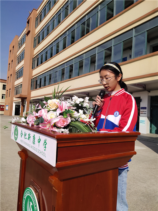 不吃苦的青春是不完整的,不拼搏的青春是不精彩的!来自七(6)班的王希同学带来国旗下讲话。她劝告同学们不要做懦弱的退缩,不要做无谓的彷徨,不如脚踏实地、默默努力。她建议同学们一定要制定好复习计划,各学科全面突击,不能偏科,复习过程中要提高效率,做到复习任务日日清,只要你能坚持完整的完成你的复习计划,相信成功离你并不遥远。