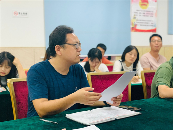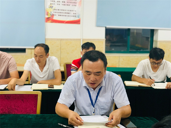 随后,年级组长陈世宝老师进行了发言。为了新康一期传奇的谱写,他做了几个方面的表态,九年级将是一个团结而和谐的团队,一个注重教研和无私交流的团队,一个恪尽职守且时刻关注学生的团队。有了这样的团队,新康中学必将再创辉煌。
