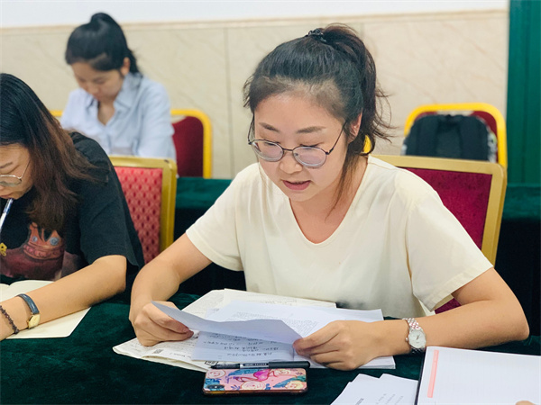 接下来,张盼盼老师作为教师代表发言。她认为,学校把新康一期这副重担交给了我们,这既是对我们的信任,也是对我们的肯定。工作在教育一线的我们要做到提前计划,备课充分,重视课堂,狠抓落实。
