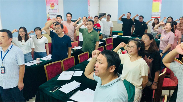 接下来,全体师生举起右拳,慷慨激昂,庄严宣誓,铮铮誓言响彻在各位老师心中,也响彻在自己的教育教学生涯中。