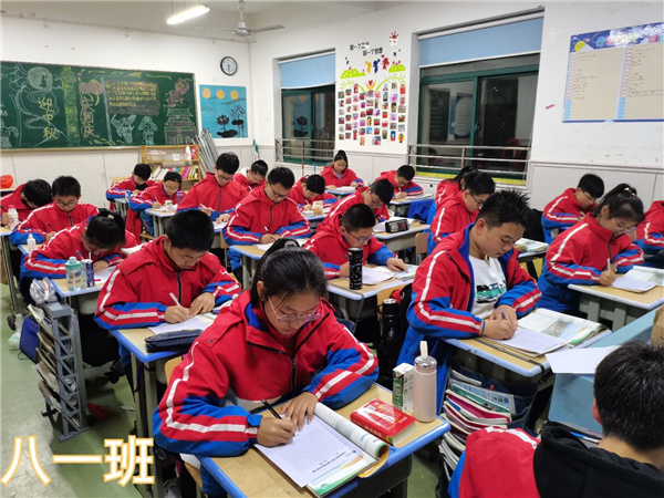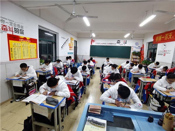 晚自习铃声响起,大赛正式开始。同学们个个满怀激情,在老师的指导下,坐姿端正、握笔正确,用心书写每一个笔画,每一个汉字,每一个单词。汉字书写,笔画流畅、横平竖直、整体美观;英文书写,布局良好、结构匀称、秀气漂亮。短短的半个小时,同学们将自己的书写功力展现的淋漓尽致。